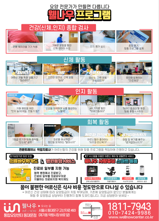 서울시 동대문구 고산자로 493, 1, 2, 3, 4층(제기동) | 1811-7943 | info@wellnow.com